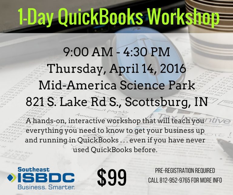 The Southeast ISBDC will be holding a QuickBooks Workshop at the Mid-America Science Park in Scottsburg on Thursday, March 2, 9 a.m. to 4:30 p.m. Learn everything you need to know to get your business up and running. CLICK HERE TO …